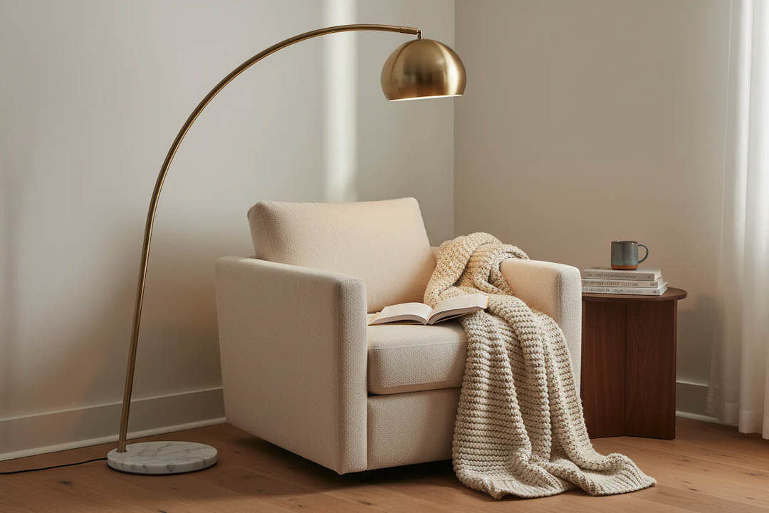 - Arc Lamps: While some arc lamps can be quite grand, there are more compact versions that can be positioned to extend light over a corner without taking up much floor space directly within it.